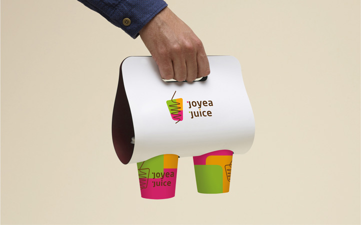 此次設(shè)計(jì)對VI、產(chǎn)品包裝、店鋪形象都作了統(tǒng)一規(guī)劃。VI形象表達(dá)多彩而又簡潔,融入活力、時尚、專業(yè)的動感元素。以logo為例,它由圖案和文字組成,其中圖案為三種明麗的色彩合成一個杯形,吸管是活潑有力的流線型,象征品牌的繽紛活力,既形象又時尚。